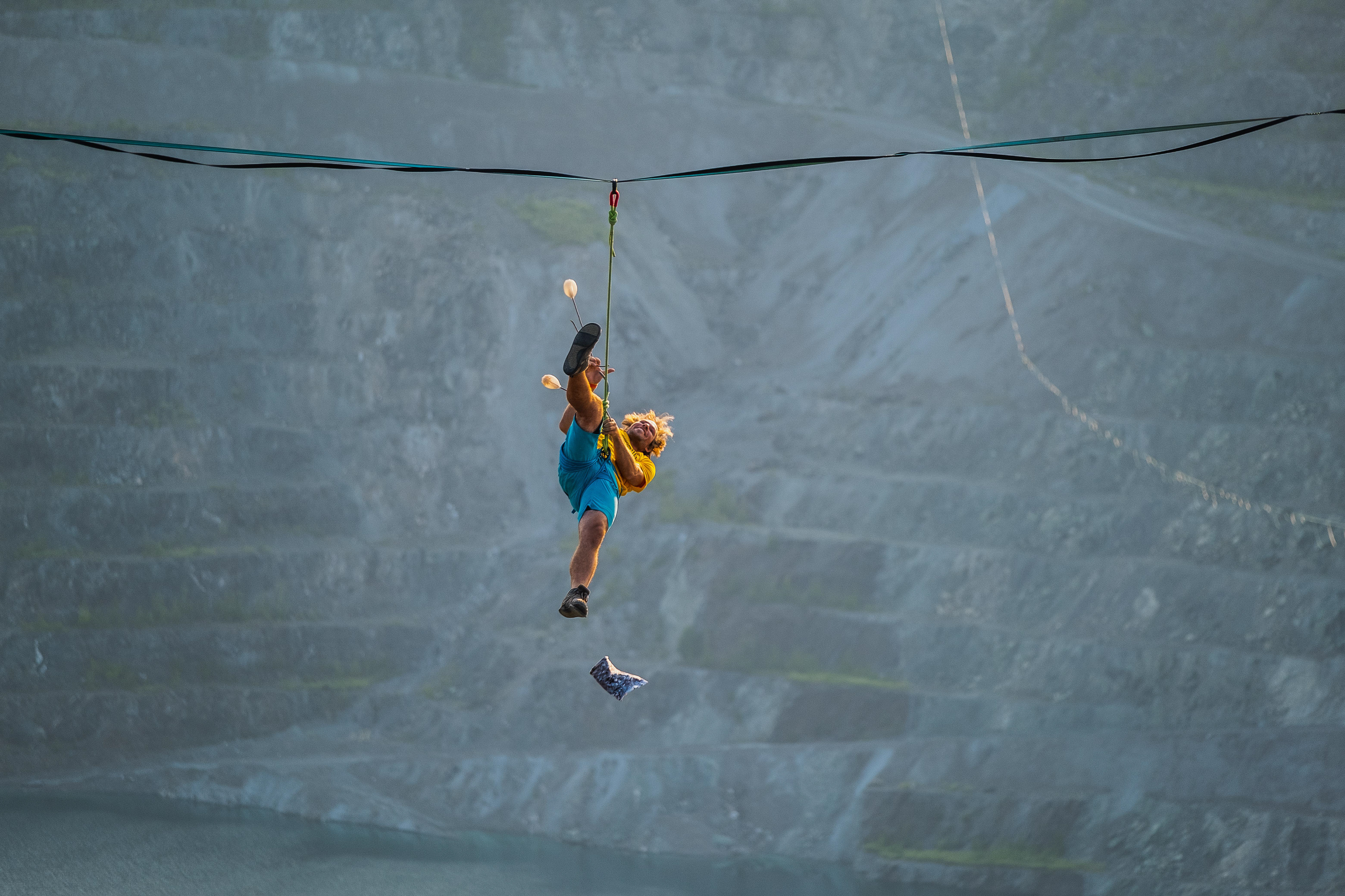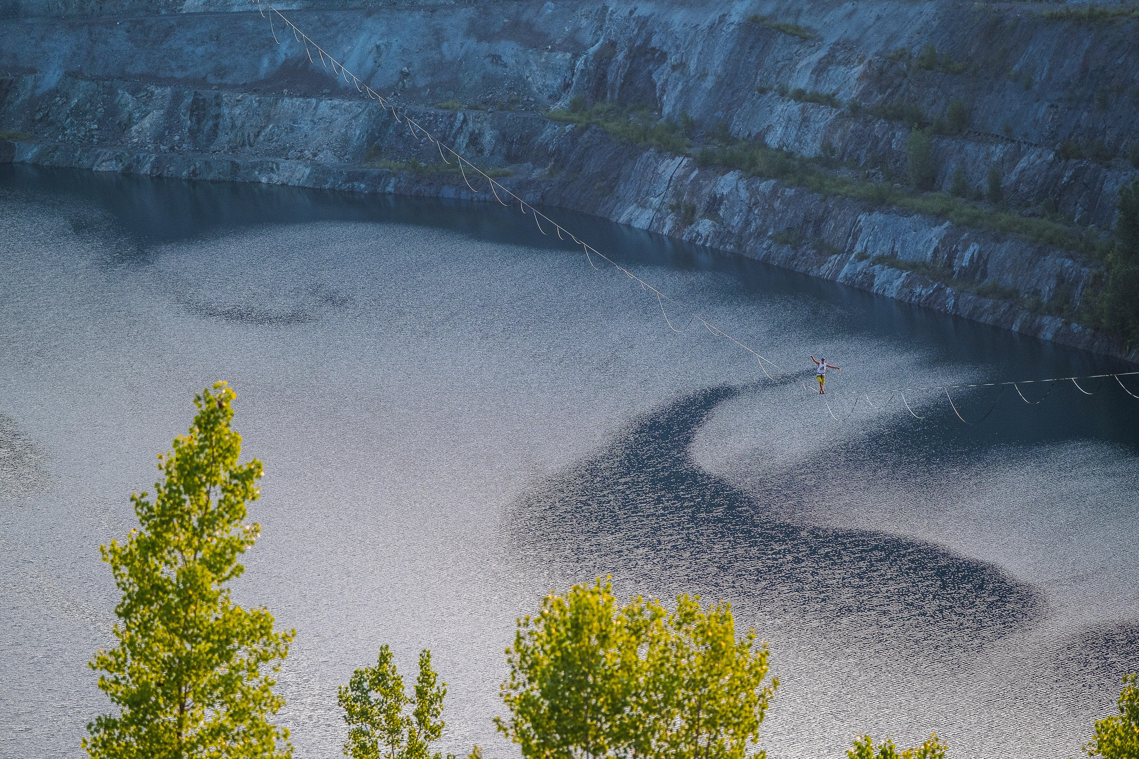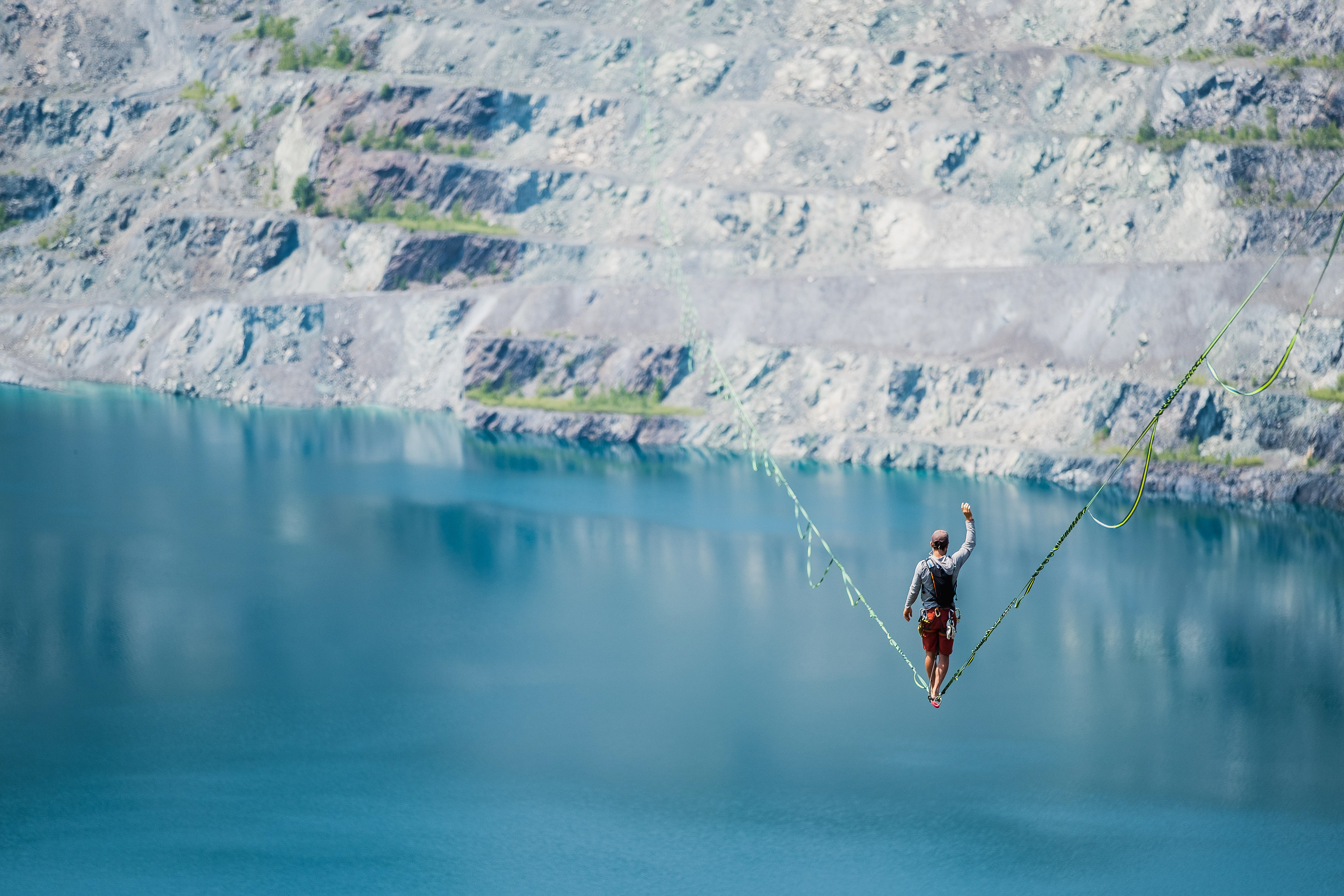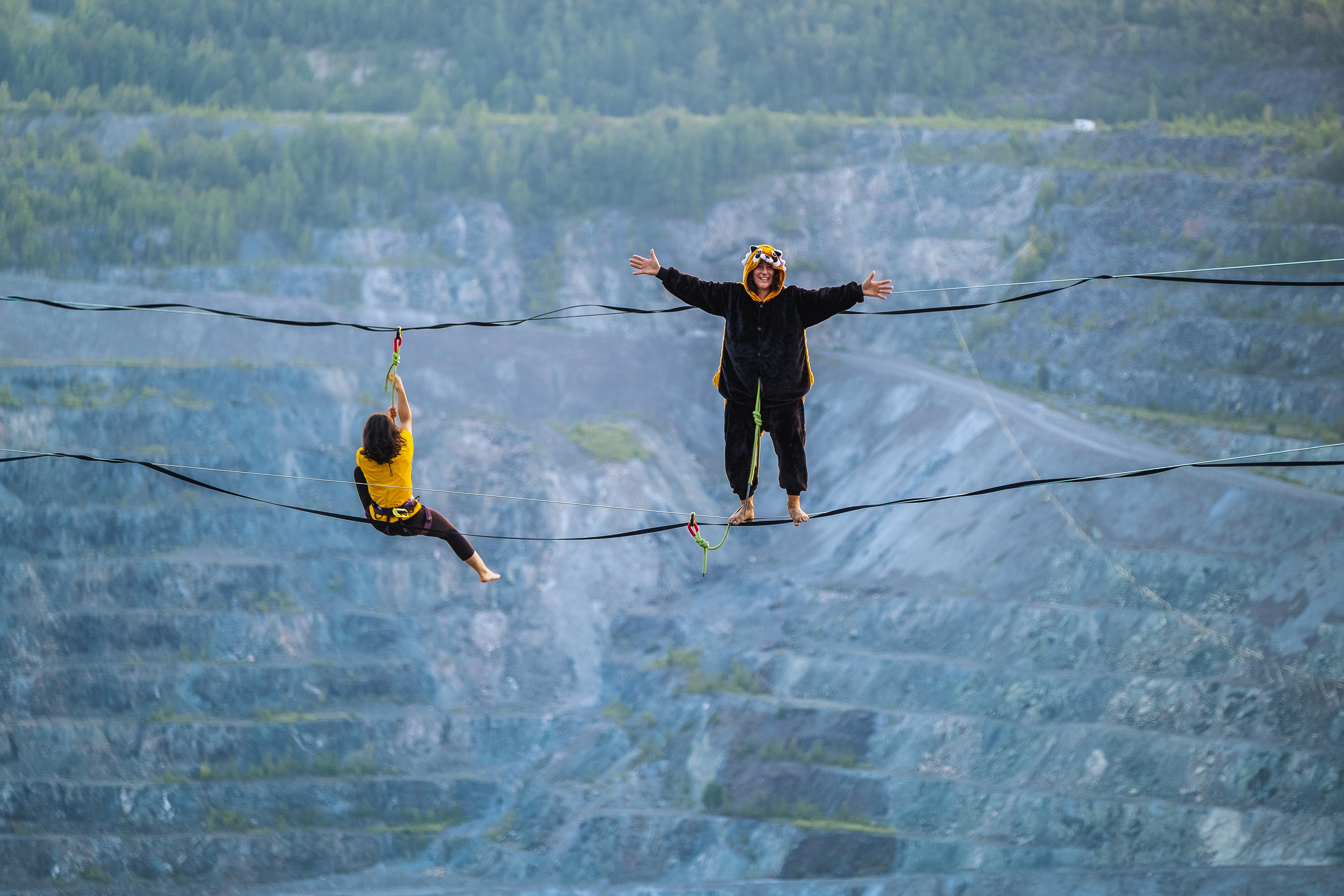 Asbestos highlining festival was held to celebrate the establishment of the longest slackline in the world. The world record got pushed to 2km.